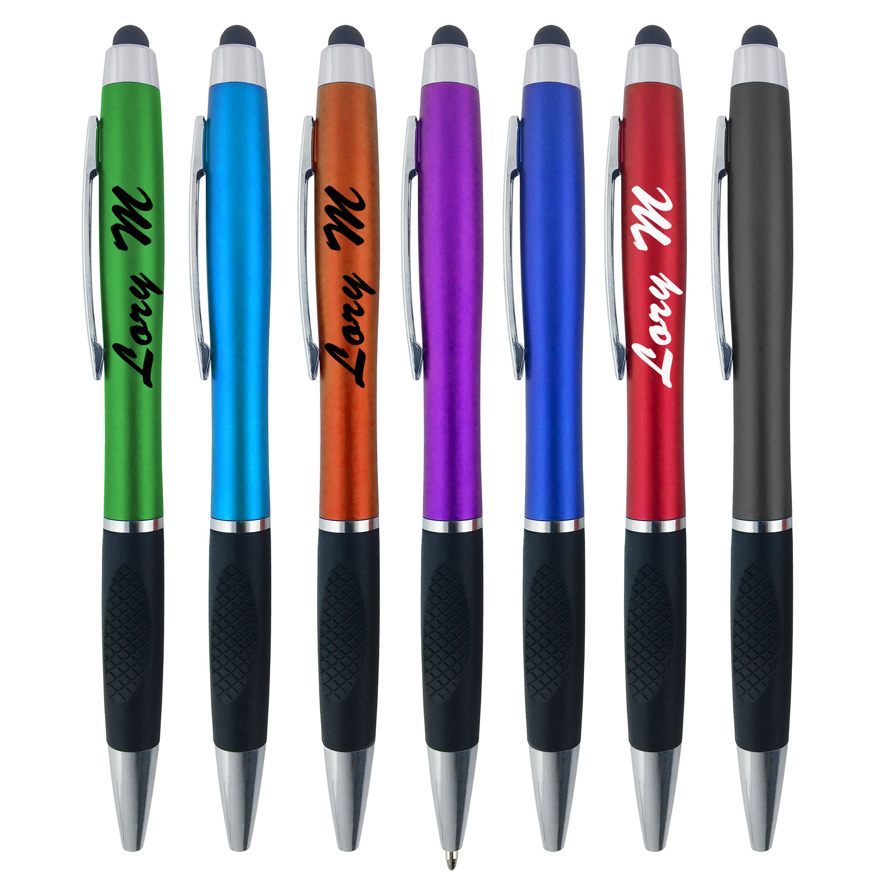 Lory M Metallic barrel metal clip black rubber grip stylus tip twist pen