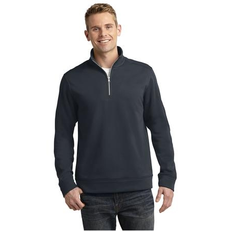 Designed for all-weather training this moisture-wicking pullover allows water to bead up and roll off thanks to its durable water repellent (DWR) finish. The 1/4 zip lets you control the ventilation and a brushed fleece interior keeps you warm. 7.5 Ounce 100% polyester with DWR finish. Roomier fit with Cadet collar, metallic Vislon zipper, set-in sleeves, front arm seaming, and self-fabric cuffs and hem.