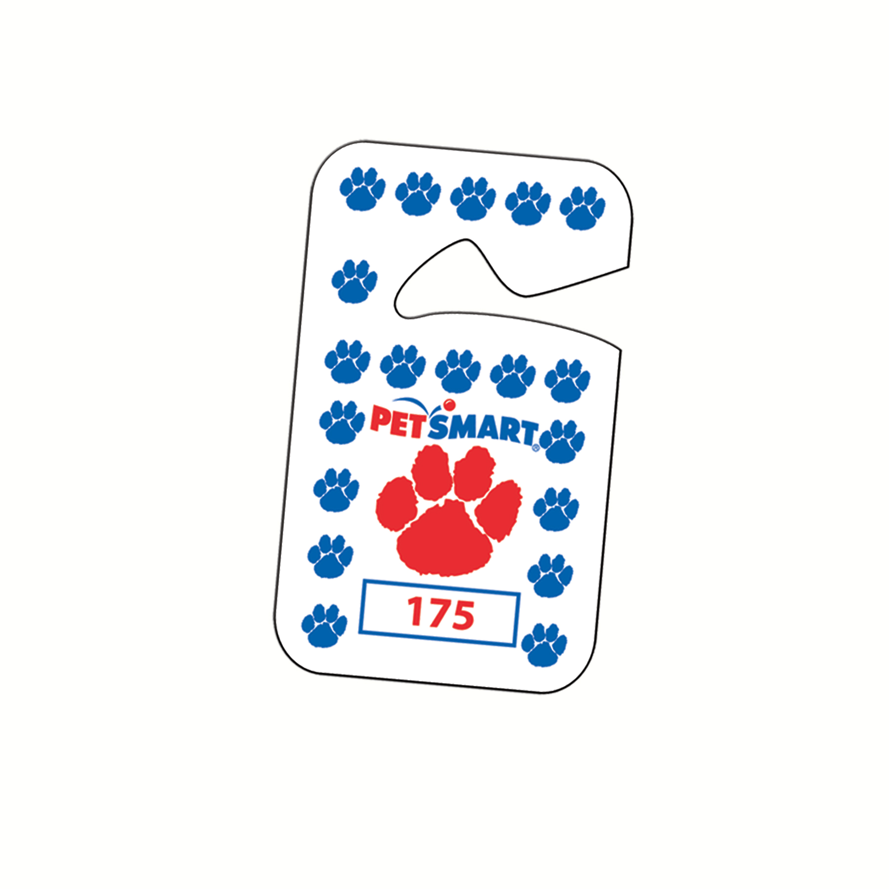 Rear view mirror hanger. Made from 14 pt., high density, white poster board. Liquid laminated for a high gloss finish. Quick turn, just ask. Your custom message or logo will sure to be seen!. Complies with CPSIA. 4.75" L x 2.875" W