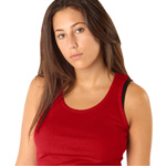 Textured 5.8 ounce 100% ringspun combed cotton 2x1 rib 30-singles fabric. Form fitting. When put in dryer will shrink an average of one size. XS-2XL: White, Black. S-XL: Aqua, Coral, Cranberry, Seafoam. S-2XL: Asphalt, Baby Blue, Brown, Creme, Fuchsia, Grass, Heather Gray, Kelly, Lemon, Light Blue, Light Pink, Navy, Orange, Pink, Purple, Red, Royal, Teal. XS-XL: Army, Eggplant, Sangria. XS, XL: Olive.