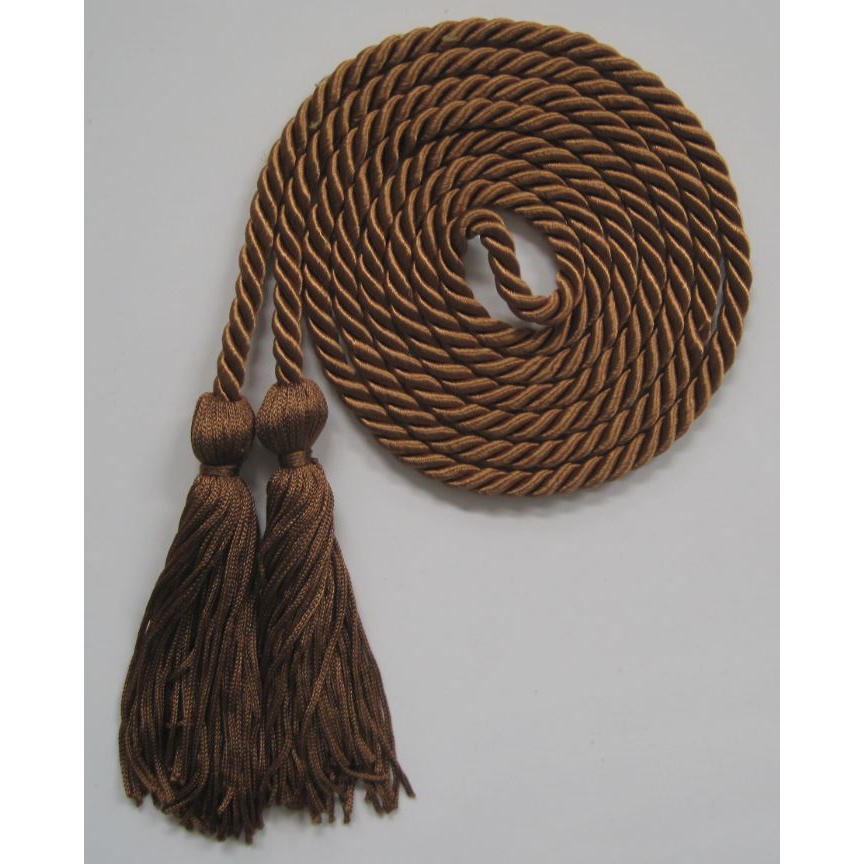 Superior quality single honor cord. Available in a variety of standard colors. Custom colors and PMS match cords available at the low production quantity of only 2,000. Premium cords are made of 100% rayon measuring 65" L with matching 4" tassel attached. 65" L