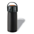 Full stainless steel double wall construction, vacuum seal with leatherette sleeve, push button pour spout, cap functions as lid and cup. 9.61" H