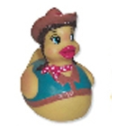 Cowgirl Rubber Duck is weight balanced and waterproof for rubber duck races. Traditional cowgirl outfit, Western themed gift collection. Also available Cowboy Rubber Duck. Complies with CPSIA. 3 1/2" L x 3" W x 3 1/2" H