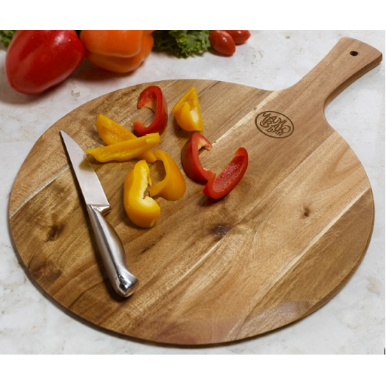 Achieve pizza perfection with this ideal paddle shaped table server for pizza. Features: elegant acacia wood constructing, hanging hole, doubles as a beautiful cutting board and serving tray. Beveled edge slips easily under pizza crust. Handle keeps fingers away from extreme heat. Makes a great gift for pizza lovers and new homeowners. Complies with FDA. 13" W x 18" L x .5" H