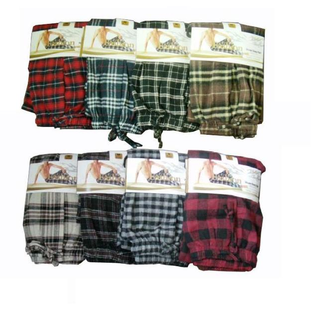 Mens Sleep Pants, packaged individually with their hanger,(heavy weight) Material of this mens sleepwear: cotton/ flannel Color: assorted colors with these mens sleep pants clothing Size: S/12, M/24, L/24, XL/24, 2X/12 TOTAL: 96 pieces. Ratio package: 1/2/2/2/1.