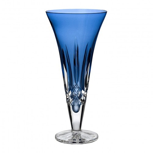 Waterford Lismore Sapphire features the brilliance and clarity of the classic Lismore pattern with a dramatic pop of exciting sapphire color. You can't improve on nature, but you can come close with the Lismore Sapphire 9" Flared Vase. This boldly colored fine crystal vase is designed to accentuate the beauty of roses and cut floral arrangements. Patterned with Lismore's signature diamond and wedge cuts, it 'pops' vividly to life thanks to the dramatic Sapphire accent. 9" H