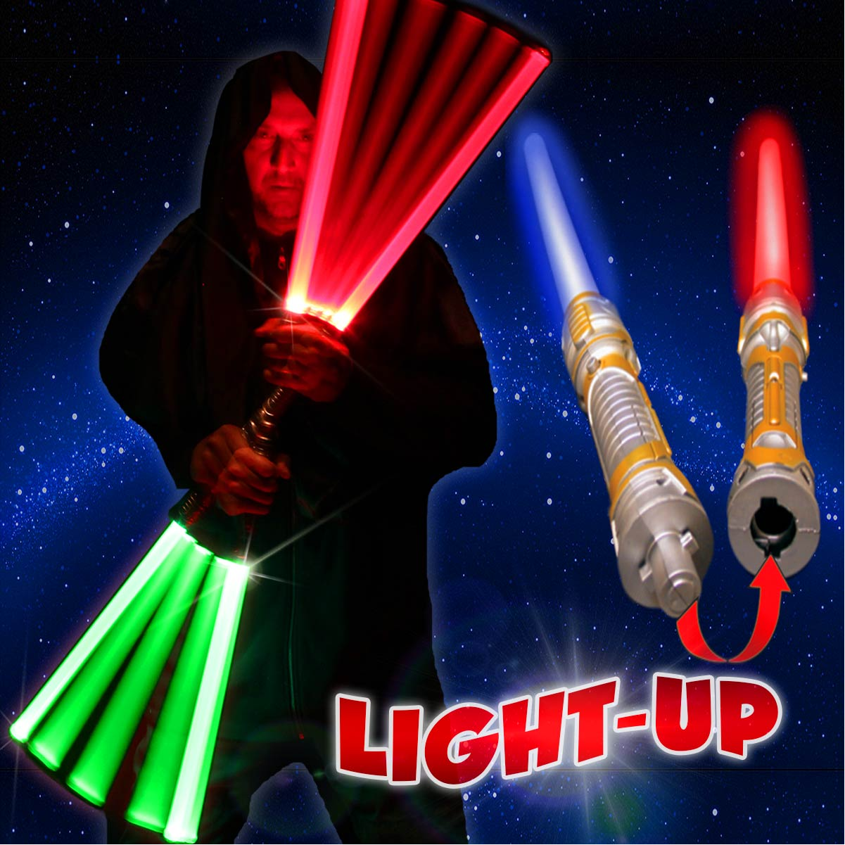 Show of your skills with the LED Light Saber. This is a fabulous light up item, ideal for any Jedi or Sith. Our LED Light Saber features 7 functions. You can enjoy it as two single blade LED Light Sabers or put it together to form a double ended LED Light Saber. You can also get creative and use it as a part of a centerpiece. Our LED Light Saber comes with 6 AAA batteries which are included and installed and sold by the piece. Please order in increments of 1 piece,. Complies with CE, CPSIA, C-TPAT. 54" L