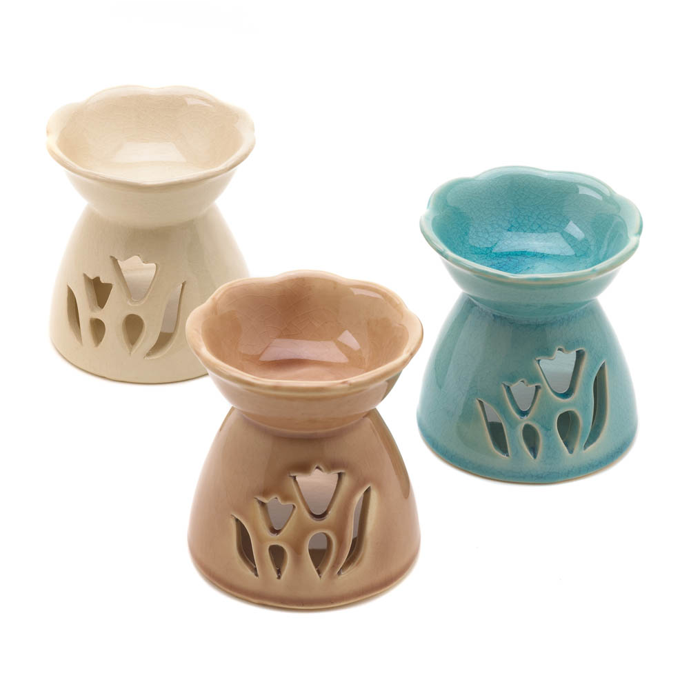 These are the perfect little accessories for your home! They'll bring plenty of charm, thanks to their fresh colors and tulip patterns, and great aroma when you fill them with the scented oil of your choice. Ceramic. 3 1/8" L x 3 1/8" W x 3 1/2" H